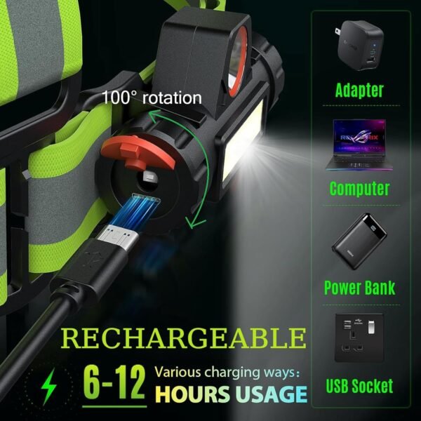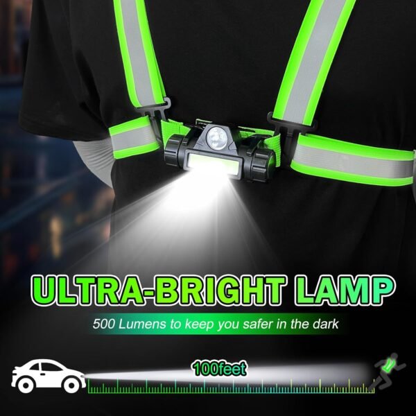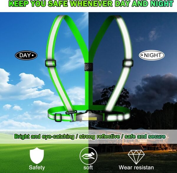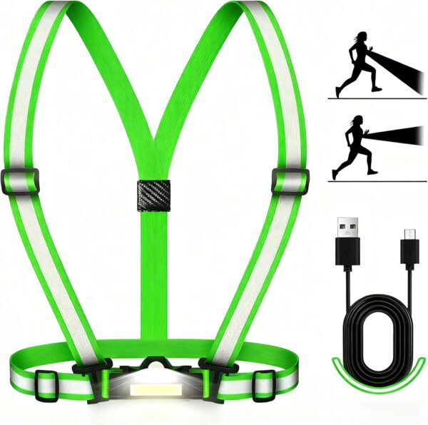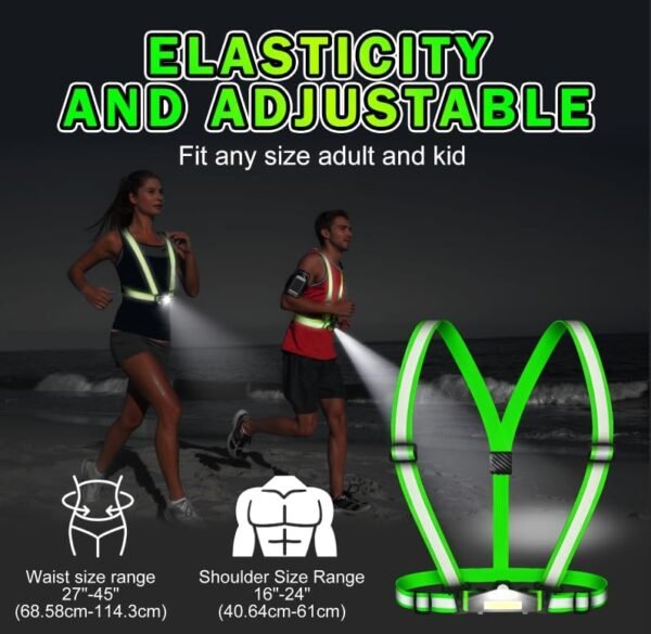 USB power supply safety assistant: The running vest light can be charged with the included USB, and the battery life is approximately 8 to 15 hours. The detachable headlights provide you with an instant flashlight to check under the car or find the keys.