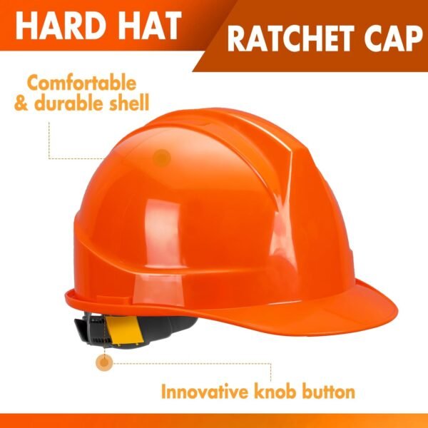 Ratchet suspension design: One of the prominent features of this construction helmet is that it can be easily resized to fit different head sizes; There is a convenient knob at the back of the hat. Just turn it to adjust the size and ensure a comfortable fit