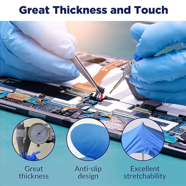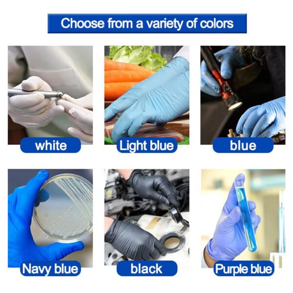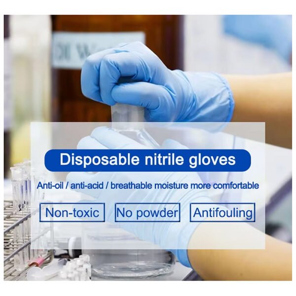 Durable nitrile material – High-quality nitrile material provides a reliable barrier, ensuring that the gloves will not tear easily. Not made of natural rubber