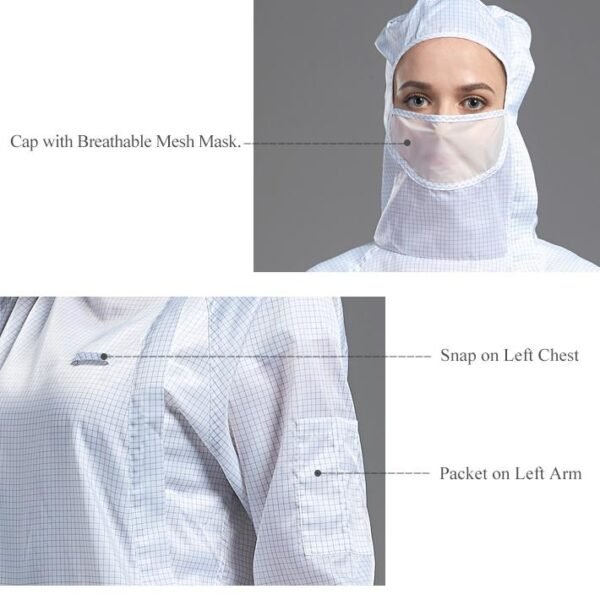 1. Anti-static and dust-proof work clothes, fully conductive fabric, highly efficient anti-static and dust-proof.