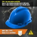 Safety and reliability: This durable construction helmet is specially designed for moderately high-risk environments, providing protection against electric shock. The ventilation design enhances safety, making it a reliable choice for challenging workplaces.