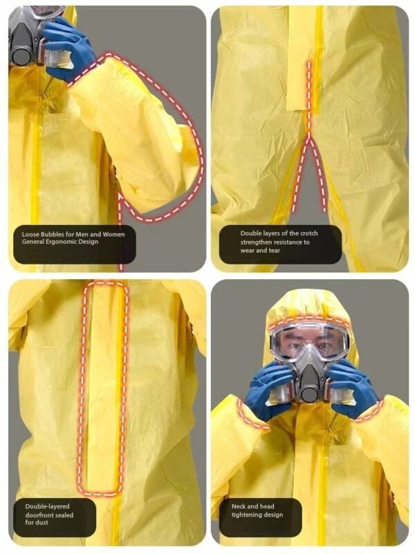 Anti chemical splash protective clothing effectively combats various harmful chemicals. Multi layer high-density barrier fabric is sturdy, durable, and effectively protects against numerous chemicals. High visibility yellow is safer for wearers.