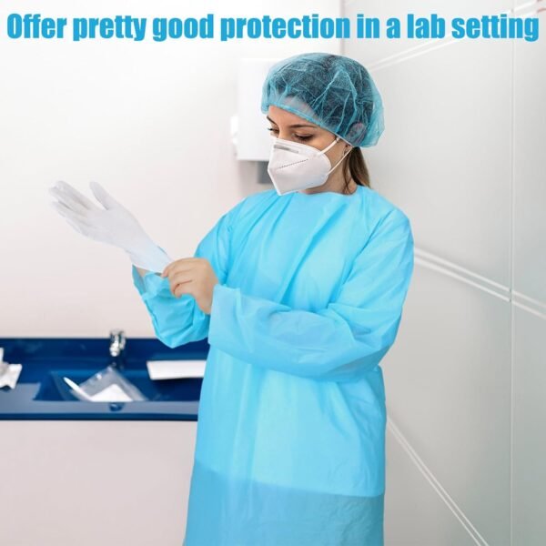 2. Comprehensive protection: The blue isolation bathrobe features a long-sleeved design. The thumb ring ensures that the protective suit remains in place, fully covering your body. In addition, the tearable neck provides safety and easy disassembly, making it suitable for various conditions and environments