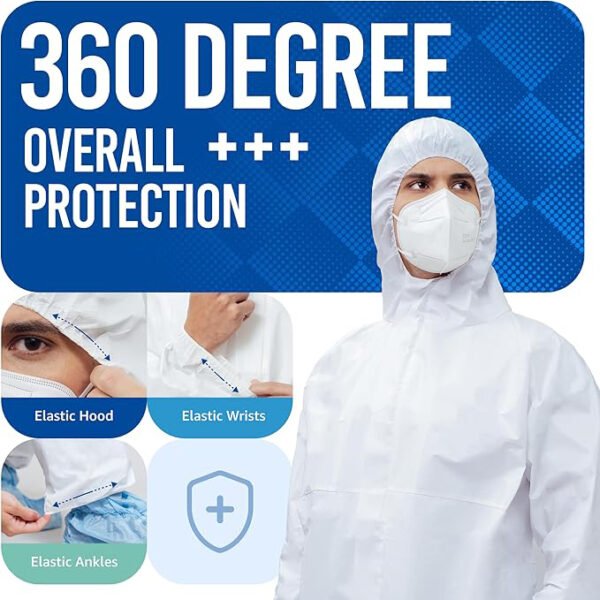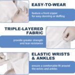 1. Strong protection: It adopts a three-layer SMS structure of spunbond – meltblown – spunbond. The meltblown layer intercepts droplets, dust and non-oily particles at a high density.