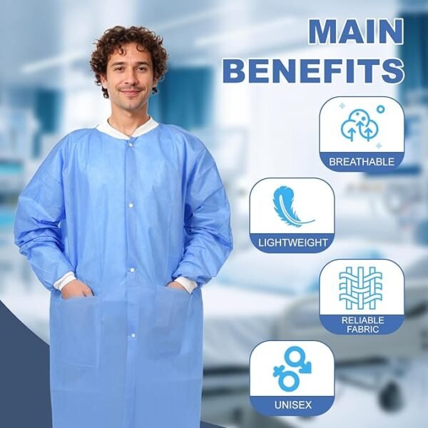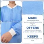 3. High quality: The disposable lab coat is made of 40g three-layer composite non-woven fabric and is a non-stick and meltblown composite product. It features dust-proof, water-proof, oil-proof, breathable and odorless properties. This fabric is very thick and durable.