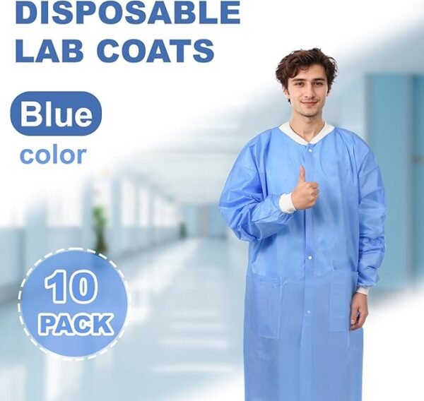 4. Packaging method: 10 disposable laboratory jackets per package, 50 in each box, neutral x – large size, ensuring easy fit for most adults.