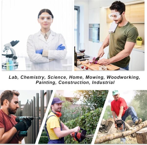 Eye protection safety goggles – Perfect for safety in laboratories, chemistry, science, lawn mowing, onion cutting, woodworking, construction sites, industry, photography, DIY projects, homes and workplaces.
