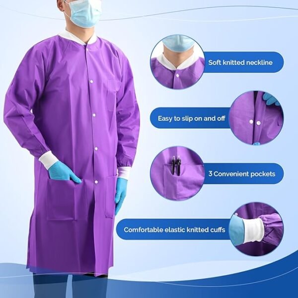 Convenient and easy to wear: The JMU disposable medical jacket features a front-buttoned quick on and off design and has three convenient pockets for carrying personal items with you.