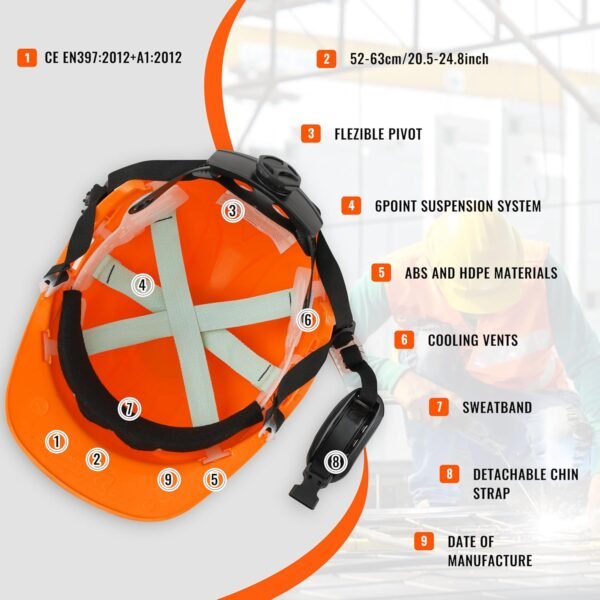 Multi-functional compatibility: It can be seamlessly integrated with accessories such as safety glasses, ear protectors, headlamps, metal mesh guards and transparent sun visors