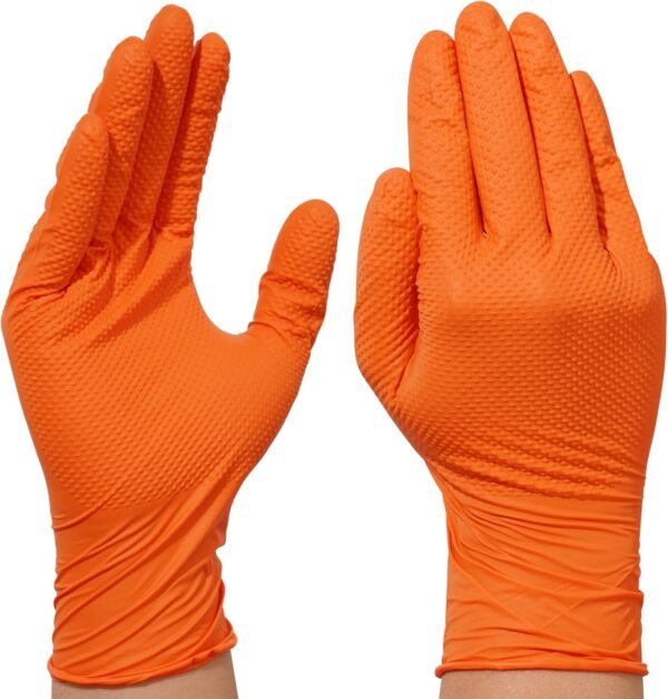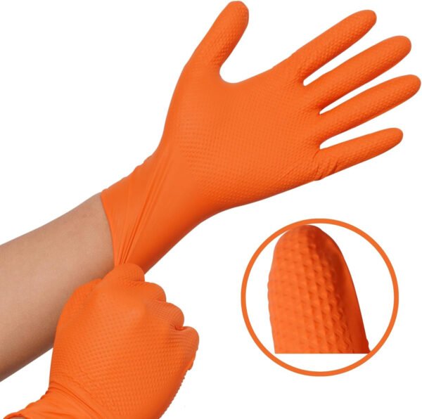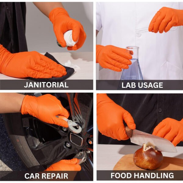 Latex and powder-free: The orange nitrile gloves are designed to fit like natural rubber. It has three times stronger puncture resistance than latex gloves and is safe for those allergic to latex.