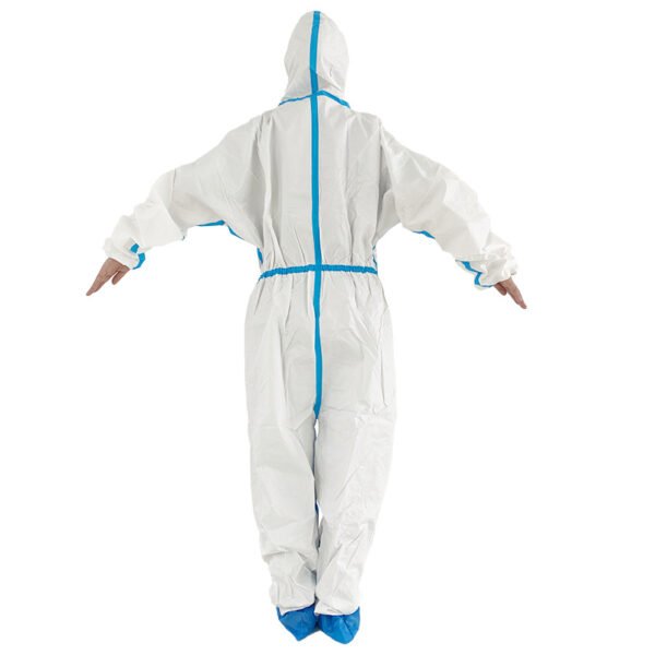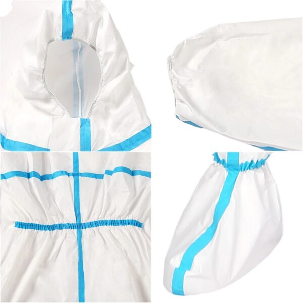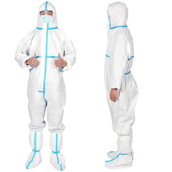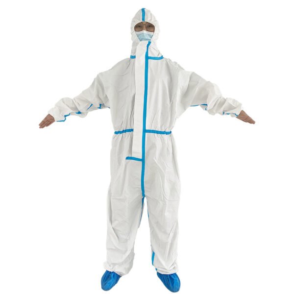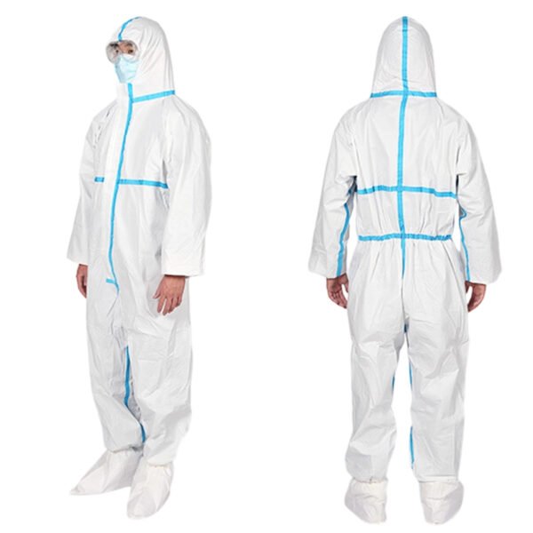 1. PP non-woven protective clothing, combined with PVC protective goggles and shoe covers, forms an integrated protective suit. The protective clothing is made of high-density PP non-woven fabric, which blocks dust, droplets, and fine particles, making it breathable and sweat proof;