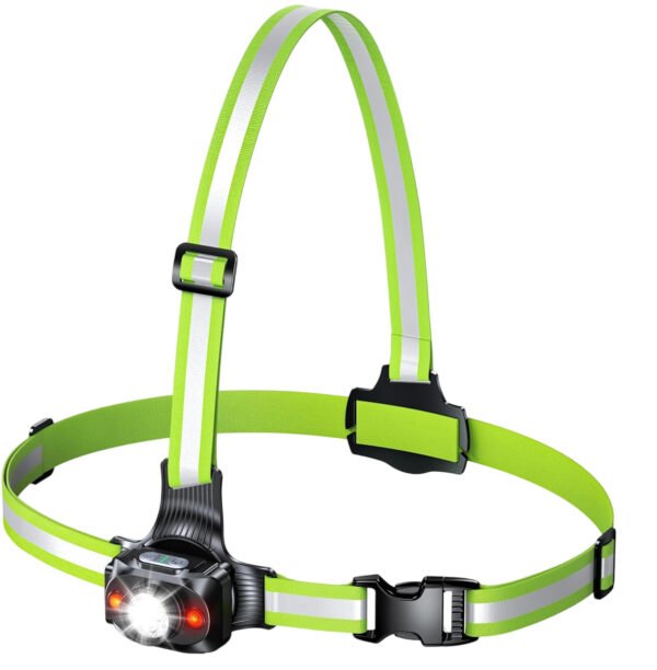 Long battery life and waterproof. Equipped with a USB-C rechargeable 1800mAh battery, this running light only takes 3-4 hours to charge and provides up to 16 hours of lighting.