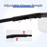 Adjustable Temple Arms – The universal-fit temples can be adjusted into 4 different positions to fit different face shapes and head sizes. The small holes on the temple tips are designed to be worn with eyeglass straps.