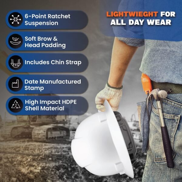 Reliable protection: Wear a full-brim safety helmet to protect your head during work! Made of high-quality high-density polyethylene material, this construction cap is sturdy and lightweight, providing excellent coverage in extreme environments.