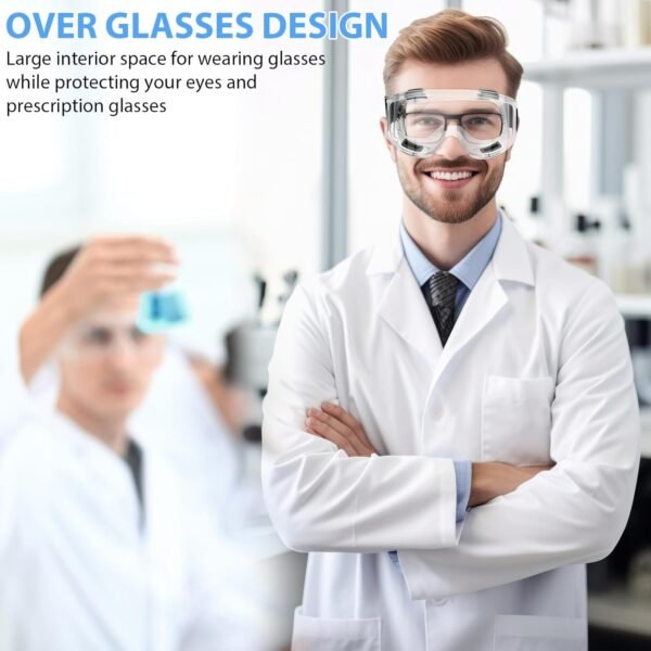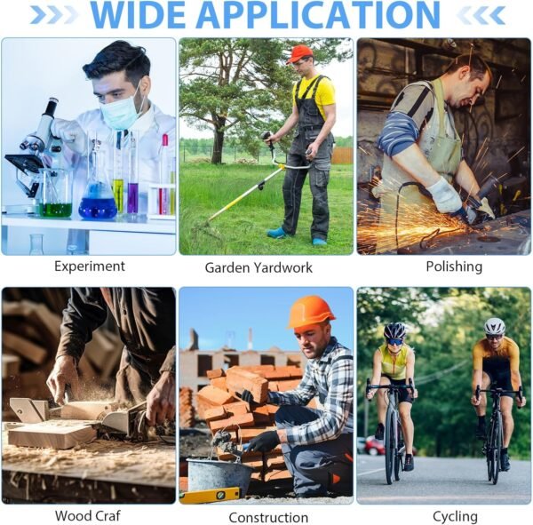 Comfortable wearing: The goggles come with an adjustable elastic headband, suitable for most people’s head circumferences. It adopts a lightweight and durable frame, which is light in weight and can be worn for a long time without feeling any pressure, providing you with a comfortable wearing experience. The internal space of the protective safety goggles allows you to share it with your myopia glasses to obtain a clear scene